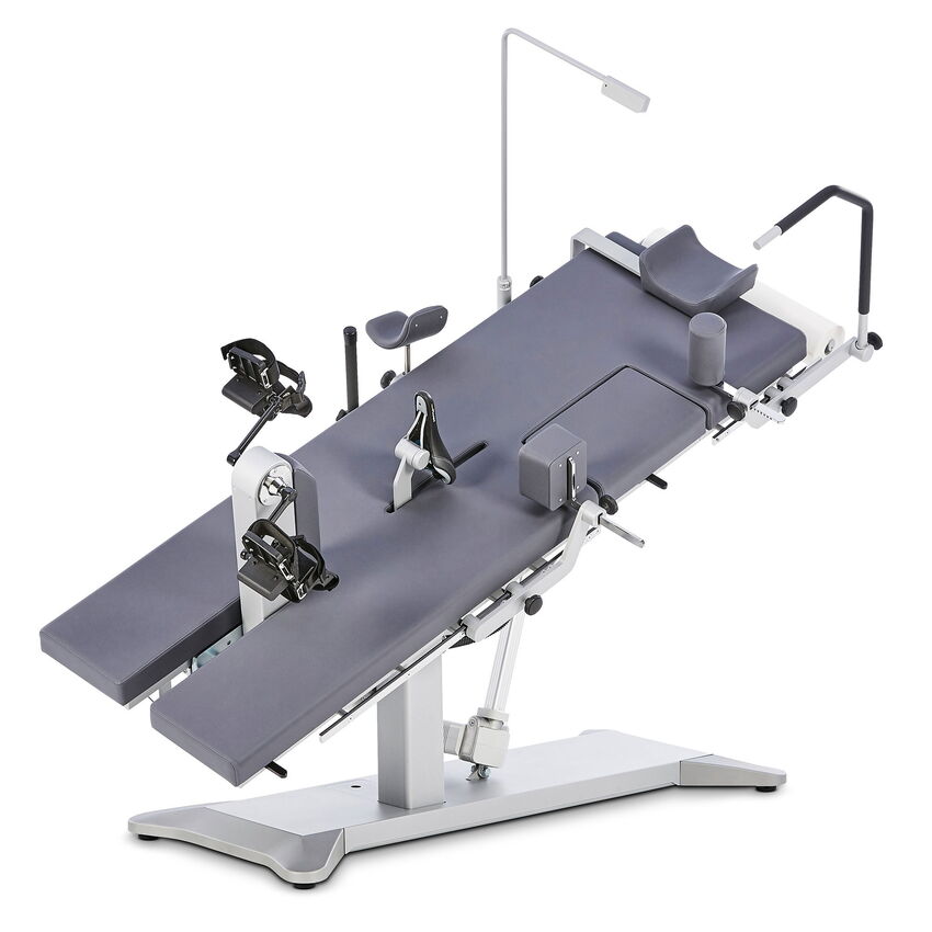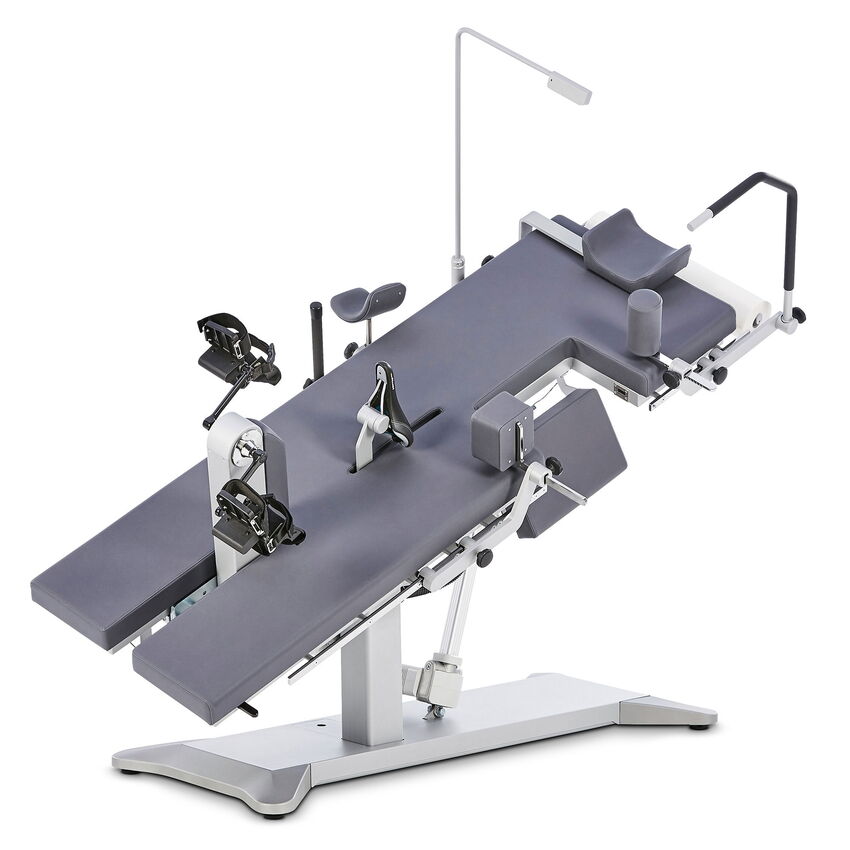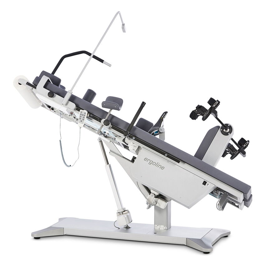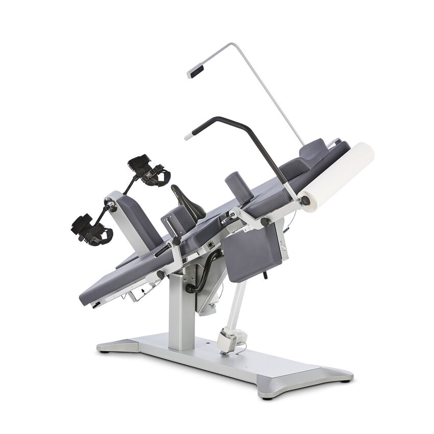 Komfortabel wird die Untersuchungsposition und die Position des Sattels über eine Fernbedienung mit Mehrfach-Positionsspeicher eingestellt, auf Wunsch auch kabellos über Funk. Voneinander unabhängige Schwenkbereiche für beide Motoren vereinfachen das Anfahren jeder beliebigen Liegenposition.