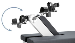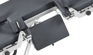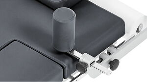Durch das einfach abklappbare Polsterelement wird die Ultraschalluntersuchung auch in Seitenlage des Patienten wesentlich vereinfacht.